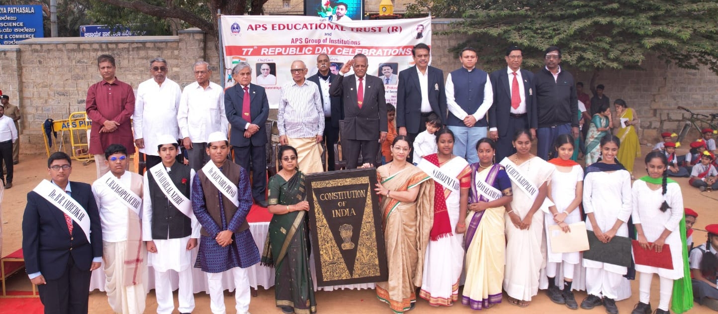 ಬೆಂಗಳೂರು: ಬೆಂಗಳೂರಿನ ಬಸವನಗುಡಿ ಆಚಾರ್ಯ ಪಾಠಶಾಲೆ ಶೈಕ್ಷಣಿಕ ಟ್ರಸ್ಟ್ ಮತ್ತು ಎ.ಪಿ.ಎಸ್. ಸಮೂಹ ಸಂಸ್ಥೆಯ ಕಾಲೇಜು ಮೈದಾನದಲ್ಲಿ 77ನೇ ಗಣರಾಜ್ಯೋತ್ಸವನ್ನು ವೈಭವ ಮತ್ತು ದೇಶಭಕ್ತಿ ಭಾವನೆಯೊಂದಿಗೆ ಆಚರಿಸಲಾಯಿತು. ವಿದ್ಯಾರ್ಥಿಗಳು, ಸಿಬ್ಬಂದಿ ಸಂವಿಧಾನದ ಮೌಲ್ಯಗಳನ್ನು ಗೌರವಿಸುವ ಮತ್ತು ಪ್ರೇರಣಾದಾಯಕ ವಾತಾವರಣ ಸೃಷ್ಟಿಸಿದರು.