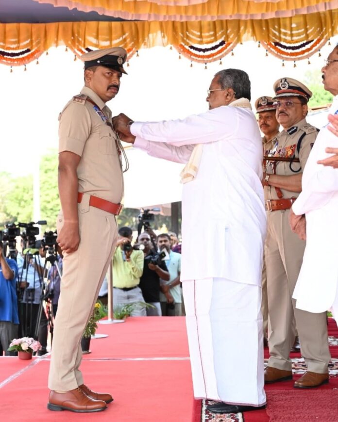 ಬೆಂಗಳೂರು ಕೋರಮಂಗಲದ ಕೆಎಸ್ಆರ್ಪಿ ಪರೇಡ್ ಮೈದಾನದಲ್ಲಿ ನಡೆದ “ಪೊಲೀಸ್ ಧ್ವಜ ದಿನಾಚರಣೆ” ಕಾರ್ಯಕ್ರಮದಲ್ಲಿ ಮುಖ್ಯಮಂತ್ರಿಗಳಾದ ಸಿದ್ದರಾಮಯ್ಯನವರು 2025ನೇ ಸಾಲಿನ ‘ಮುಖ್ಯಮಂತ್ರಿಗಳ ಪದಕ’ ಪ್ರದಾನ ಮಾಡಿ ಅಭಿನಂದಿಸಿದರು.