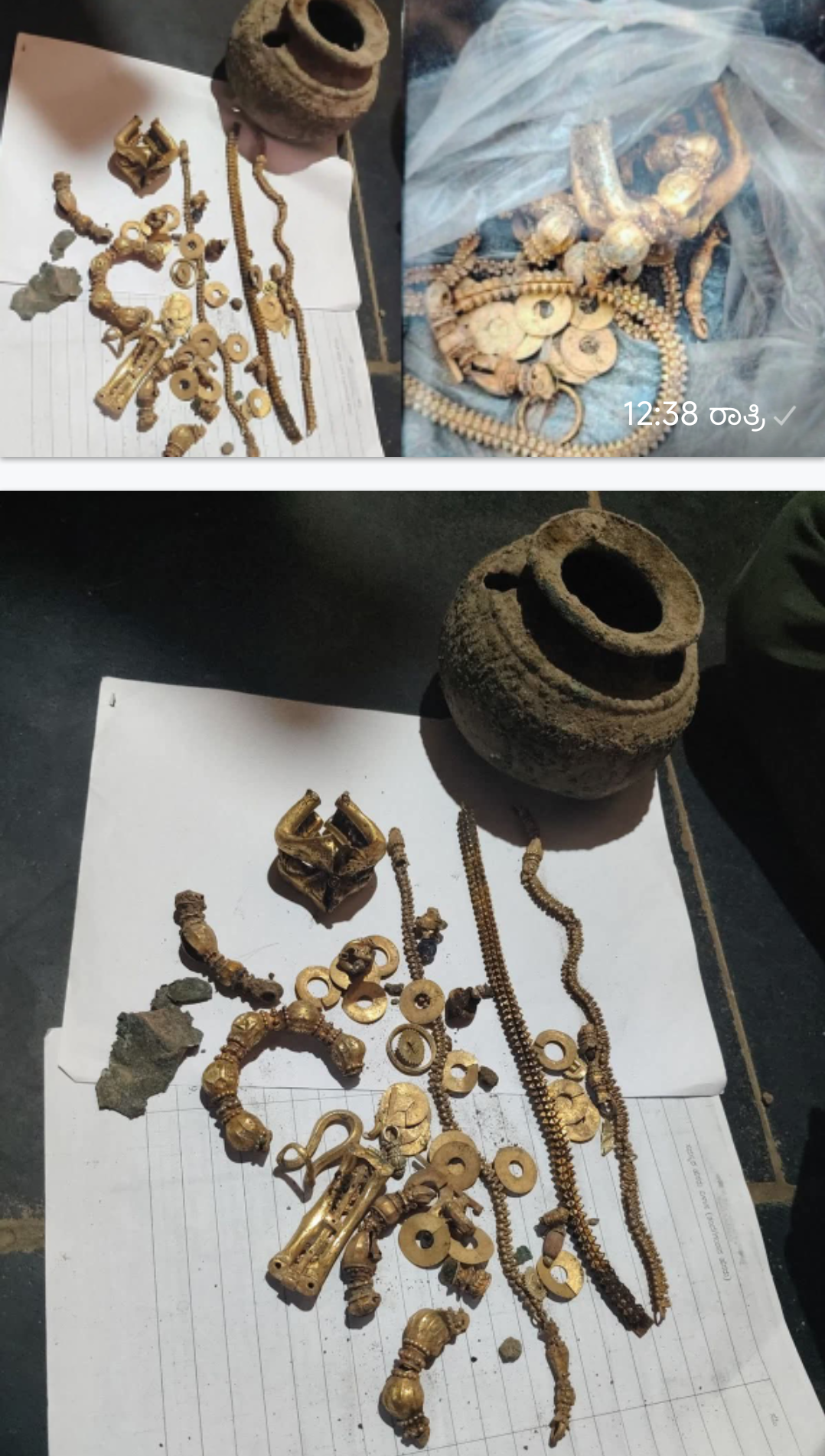 ಲಕ್ಕುಂಡಿ ಗ್ರಾಮದ ಗಂಗವ್ವ ಬಸವರಾಜ್ ರಿತ್ತಿ ಎಂಬುವರಿಗೆ ಸೇರಿದ ಜಾಗದಲ್ಲಿ ಈ ನಿಧಿ ಪತ್ತೆಯಾಗಿದೆ. ತಮ್ಮ ಮನೆ ಕಟ್ಟಲೆಂದು ಕಾರ್ಮಿಕರ ಮೂಲಕ ಅಡಿಪಾಯ ತೆಗೆಯುವ ಕಾರ್ಯ ನಡೆಯುತ್ತಿದ್ದಾಗ ಮಣ್ಣಿನೊಳಗೆ ಹೂತುಹಾಕಲಾಗಿದ್ದ ತಂಬಿಗೆಯೊಂದು ಪತ್ತೆಯಾಗಿದೆ. ತಂಬಿಗೆಯನ್ನು ತೆರೆದಾಗ ಅದರೊಳಗೆ ಚಿನ್ನದ ಗಟ್ಟಿ, ಬಂಗಾರದ ಸರ, ಬಳೆಗಳು ಸೇರಿದಂತೆ ಹಲವು ಅಮೂಲ್ಯ ಚಿನ್ನಾಭರಣಗಳು ಇರುವುದು ಕಂಡುಬಂದಿದೆ. ಈ ಚಿನ್ನದ ಒಟ್ಟು ತೂಕ ಸುಮಾರು 1KG ಇರಬಹುದು ಎಂದು ಅಂದಾಜಿಸಲಾಗಿದೆ… ಸಧ್ಯ ಈ ಬಂಗಾರದ ನಿಧಿಯನ್ನು ಊರಿನ ಗುಡಿ ಒಳಗೆ ಇಡಲಾಗಿದೆ ಸ್ಥಳೀಯರು ನಿಧಿ ನೋಡಲು ಬರುತ್ತಿರುವುದರಿಂದ ಪೊಲೀಸ್ ಬಂದೋಬಸ್ತ್ ಮಾಡಲಾಗಿದೆ…