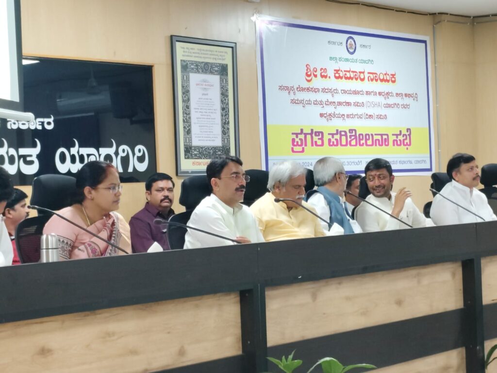 ಯಾದಗಿರಿ : ನಗರದ ಜಿಲ್ಲಾ ಪಂಚಾಯತ ಸಭಾಂಗಣದಲ್ಲಿ ಇಂದು ನಡೆದಂತ ಜಿಲ್ಲಾ ಅಭಿವೃದ್ಧಿ ಸಮನ್ವಯ ಮೇಲ್ವಿಚಾರಣೆ ಸಮತಿ (DISHA) ಯಾದಗಿರಿ ಅವರ ಅಧ್ಯಕ್ಷತೆಯಲ್ಲಿ ಜರಗುವ ದಿಶಾ ಸಮಿತಿ ಪ್ರಗತಿ ಪರಿಶೀಲನೆ ಸಭೆಯು ರಾಯಚೂರು ಲೋಕಸಭಾ ಕ್ಷೇತ್ರದ ಸಂಸದ ಜಿ.ಕುಮಾರ್ ನಾಯಕ ಅಧ್ಯಕ್ಷತೆಯಲ್ಲಿ ನಡೆಯಿತು.