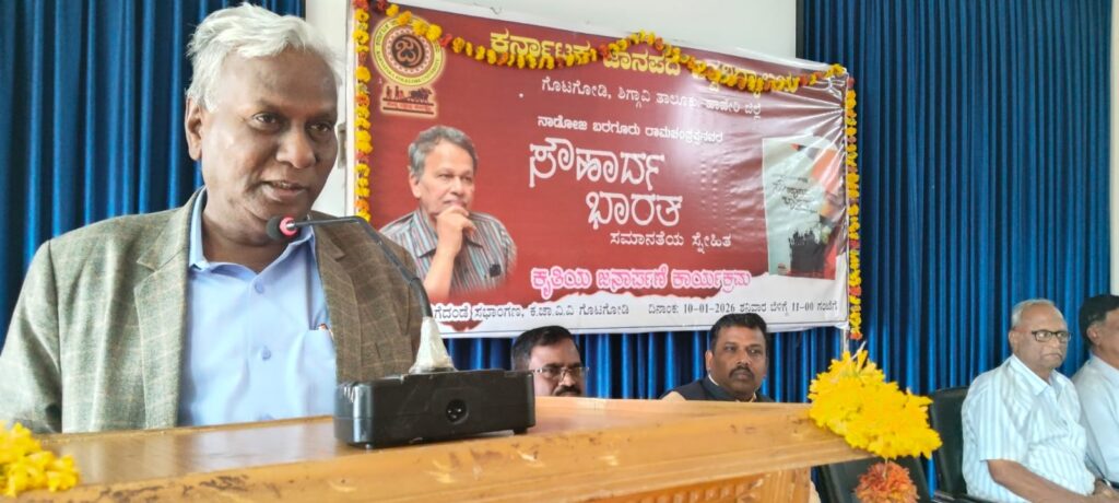 ತಾಲೂಕಿನ ಗೊಟಗೋಡಿ ಕರ್ನಾಟಕ ಜಾನಪದ ವಿಶ್ವವಿದ್ಯಾಲಯದಲ್ಲಿ ಇಂದು ನಡೆದ ಬರಗೂರು ರಾಮಚಂದ್ರಪ್ಪ ಅವರ ಸೌಹಾರ್ಧ ಭಾರತ ಪುಸ್ತಕ ಜನಾರ್ಪಣೆ ಮಾಡಿ ಅವರು ಮಾತನಾಡಿದರು. ಕರ್ನಾಟಕ‌ ಸಾಹಿತ್ಯ ಅಕಾಡೆಮಿ ಅಧ್ಯಕ್ಷರಾಗಿದ್ದ ಸಂದರ್ಭದಲ್ಲಿ ಬರಗೂರು ರಾಮಚಂದ್ರಪ್ಪ ಅವರು, 100ಕ್ಕೂ ಹೆಚ್ಚು ತಳ ಸಮುದಾಯಗಳ ಕುರಿತು ಅಧ್ಯಯನ ಮಾಡಿಸಿದ್ದರು. ಈ ಮೂಲಕ ಅಸ್ಥಿತ್ವವೇ ಅರಿಯದ ತಳ ಸಮುದಾಯಗಳ ಬದುಕಿನ ಅನಾವರಣ ಮಾಡಿದ್ದರು ಎಂದು ಕುಲಕರ್ಣಿ ಮಾತನಾಡಿದರು. ಇದಲ್ಲದೇ, ವಹಿಸಿಕೊಂಡ ಜವಾಬ್ದಾರಿಗಳನ್ನು ಅಚ್ಚುಕಟ್ಟಾಗಿ ನಿಭಾಯಿಸುವ ಮೂಲಕ, ಸಮಾನತೆ, ಸಹಬಾಳ್ವೆ, ಸಾಮರಸ್ಯದ ಬದುಕಿಗೆ ತಮ್ಮದೇ ಆದ ವಿಶಿಷ್ಠ ಕೊಡುಗೆ ನೀಡಿದ ಕೀರ್ತಿ ಬರಗೂರು ರಾಮಚಂದ್ರಪ್ಪ ಅವರದ್ದು ಎಂದು ಅವರು ಹೇಳಿದರು.