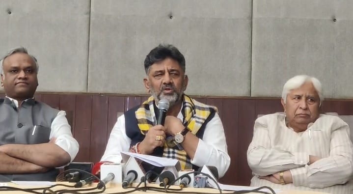 ಖಾಸಗಿ ಹೋಟೆಲ್ ನಲ್ಲಿ ಕಾಂಗ್ರೆಸ್ ಸಚಿವರು, ಶಾಸಕರು, ಮುಖಂಡರ ಸಭೆ ಬಳಿಕ ಮಾಧ್ಯಮಗೋಷ್ಠಿಯನ್ನು ಉದ್ದೇಶಿಸಿ ಶಿವಕುಮಾರ್ ಅವರು ಮಾತನಾಡಿದರು.