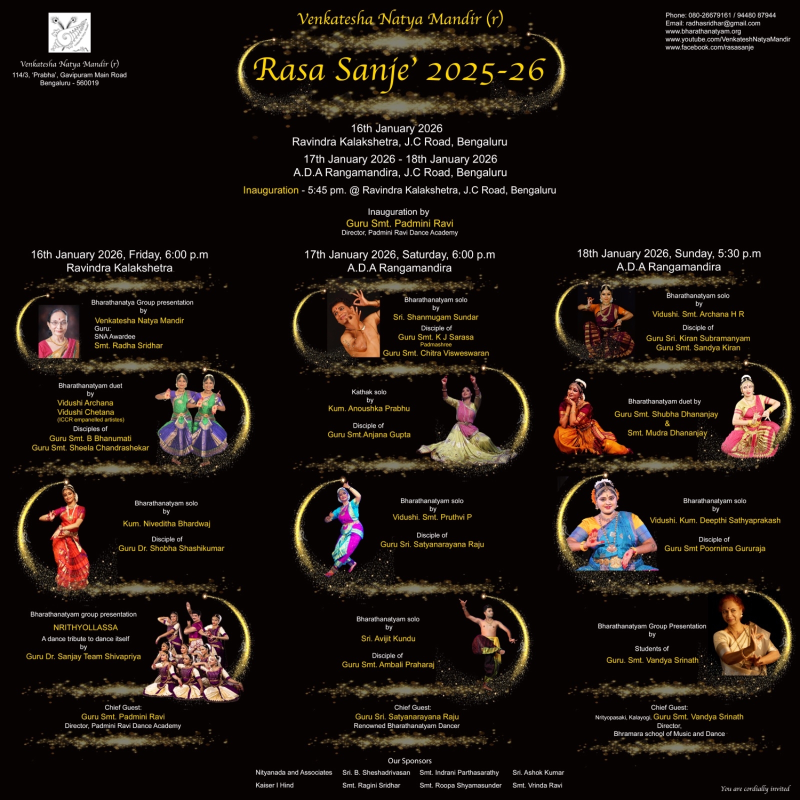ಹಿರಿಯ ಭರತನಾಟ್ಯ ಗುರು ರಾಧಾ ಶ್ರೀಧರ್ ಅವರು 1969ರಲ್ಲಿ ಸ್ಥಾಪನೆ ಮಾಡಿದ ವೆಂಕಟೇಶ ನಾಟ್ಯ ಮಂದಿರ 56ವರ್ಷಗಳಿಂದ ನಿರಂತರ ಚಟುವಟಿಕೆಗಳನ್ನು ನಡೆಸುತ್ತಾ ಬಂದಿದೆ. ಕೇಂದ್ರ ಸಂಗೀತ ನಾಟಕ ಅಕಾಡೆಮಿ ಪ್ರಶಸ್ತಿ, ಕರ್ನಾಟಕ ಸರ್ಕಾರದ ಶಾಂತಲಾ ನಾಟ್ಯ ಪ್ರಶಸ್ತಿಗೆ ಭಾಜನವಾಗಿರುವ ರಾಧಾ ಶ್ರೀಧರ್ ಅವರಿಗೆ 87ರ ಹರೆಯದಲ್ಲೂ ಜೀವನೋತ್ಸಾಹ ಕುಂದಿಲ್ಲ. ವಿಸ್ತಾರವಾಗಿ ಬೆಳೆಯುತ್ತಿರುವ ಶಾಸ್ತ್ರೀಯ ನೃತ್ಯ ಕ್ಷೇತ್ರದ ಕಲಾವಿದರಿಗೆ ಒಂದು ಪ್ರತಿಷ್ಟೆಯ ವೇದಿಕೆ ಒದಗಿಸುವುದು ಅವರ ಆಶಯವಾಗಿದೆ. ಪ್ರತಿವರ್ಷ ಜನವರಿ ತಿಂಗಳಲ್ಲಿ ಮೂರು ದಿನಗಳ ಕಾಲ ಈ ಉತ್ಸವವನ್ನು ಆಯೋಜಿಸಿ, ಹಲವು ಕಲಾವಿದರನ್ನು ಪ್ರದರ್ಶನಕ್ಕೆ ಆಹ್ವಾನಿಸುತ್ತಾರೆ. ನೃತ್ಯ ಕ್ಷೇತ್ರದಲ್ಲಿ ‘ರಸ ಸಂಜೆ’ ಉತ್ಸವ ಒಂದು ಘನತೆಯ ಸ್ಥಾನವನ್ನು ರೂಪಿಸಿಕೊಂಡಿದೆ.